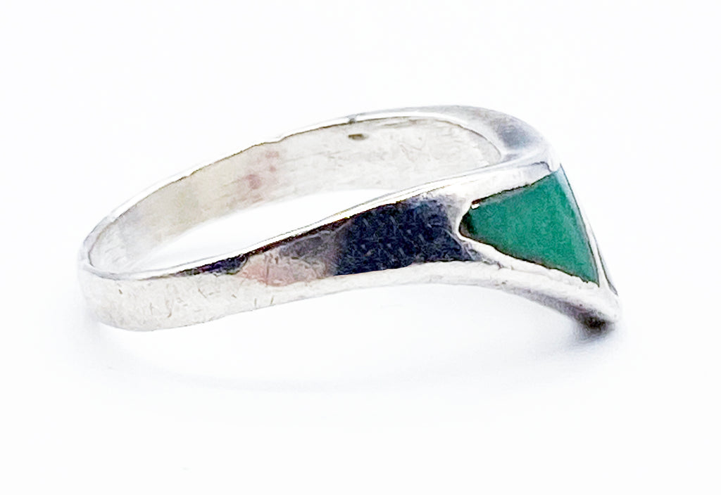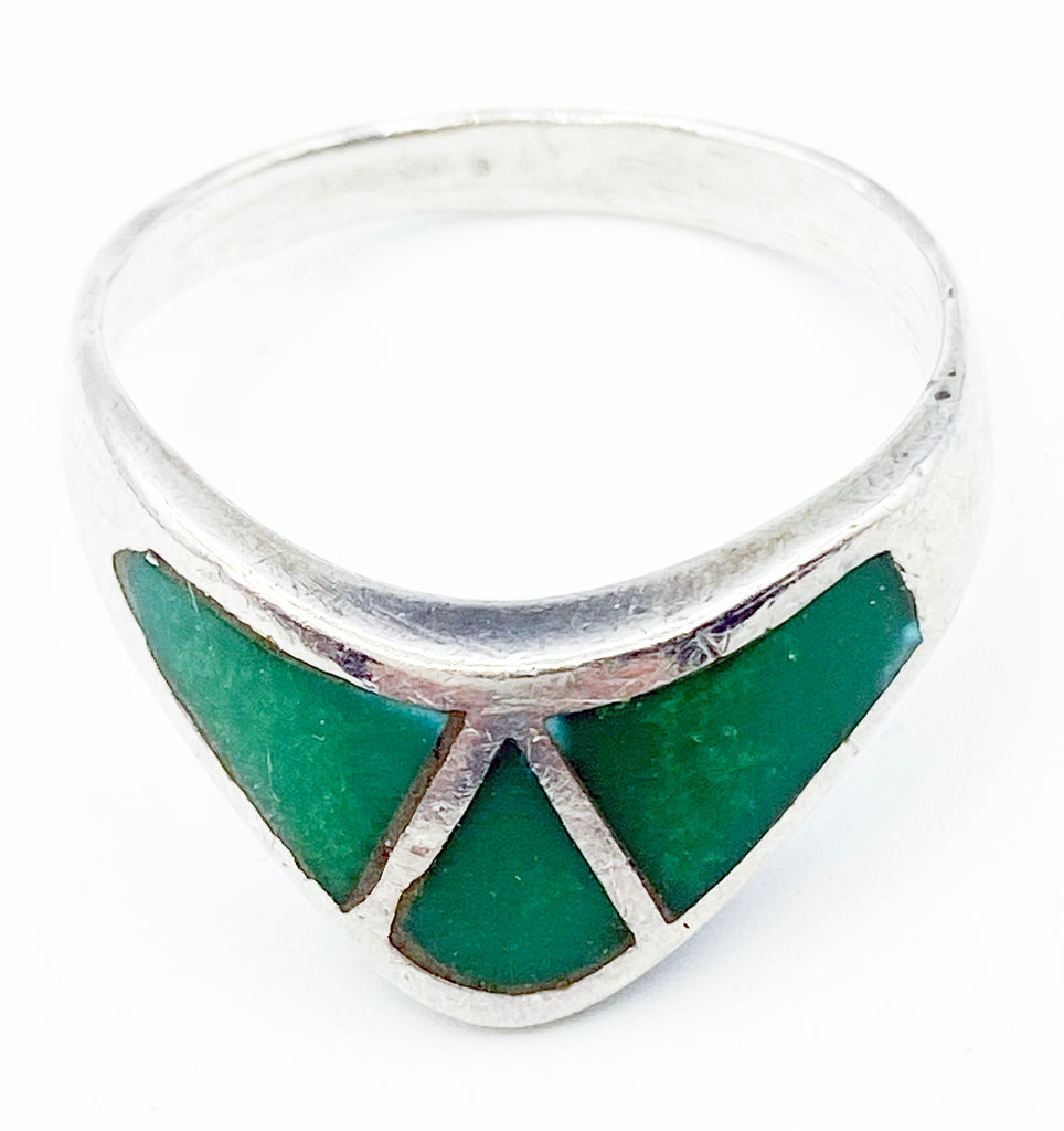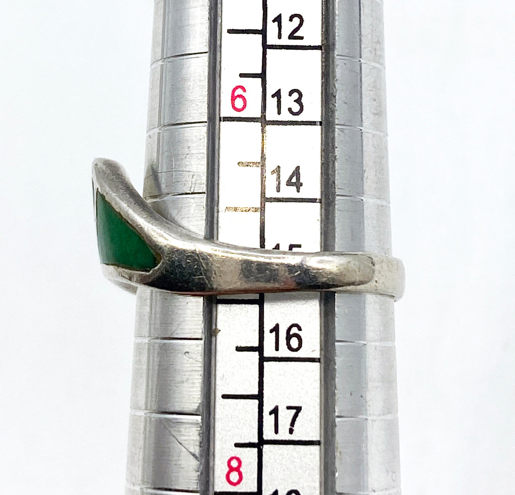 Sleek Green Enamel and Silver-Tone Metal Ring Size 7